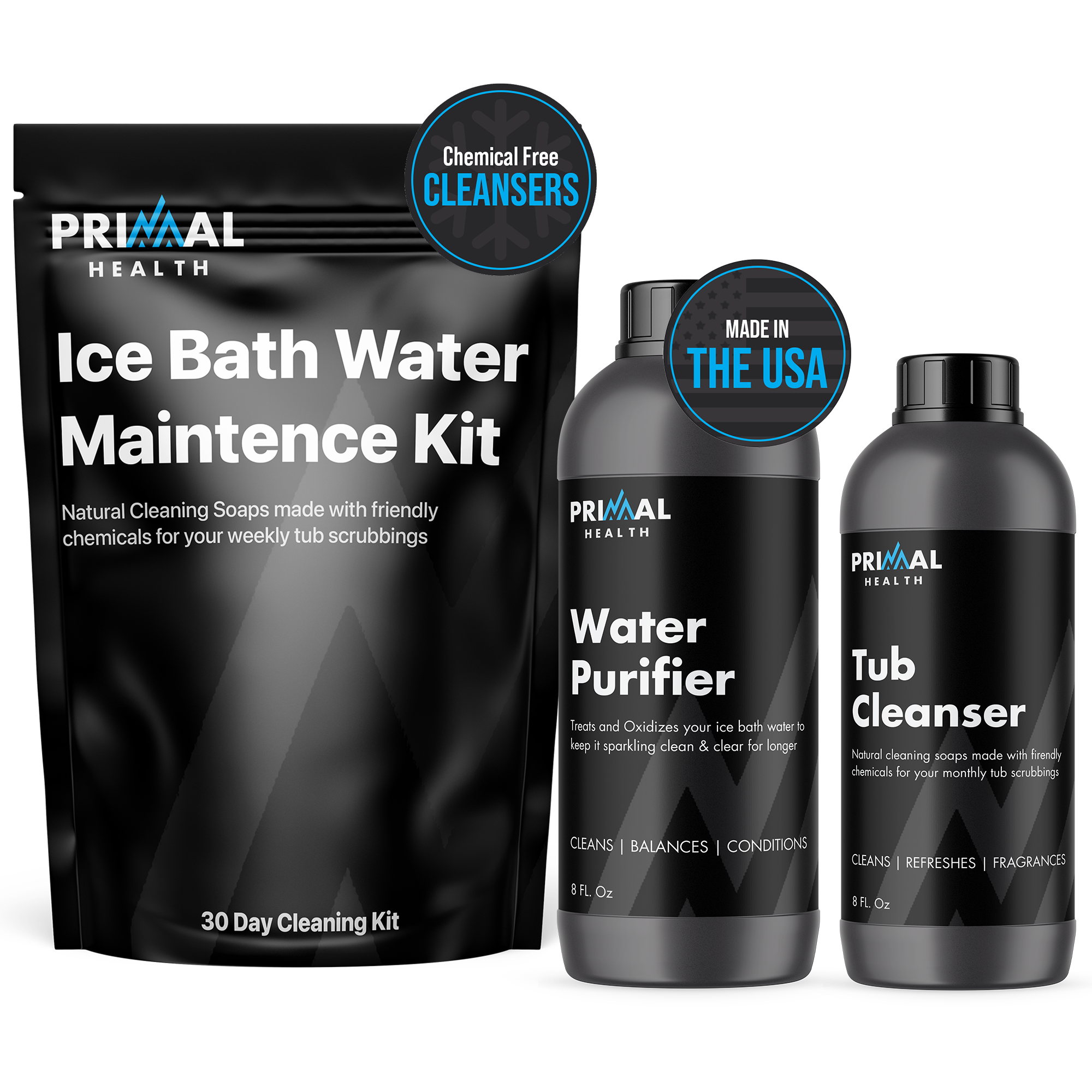 30-day cleaning kit that includes a water purifier & tub cleanser to keep your cold plunge clean